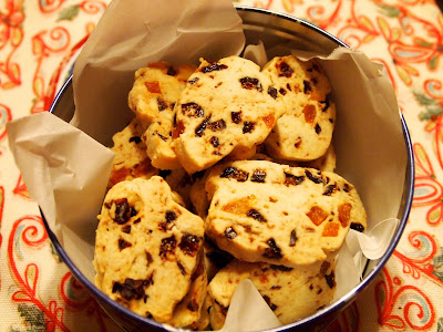 Of course, I tested the dessert recipe first. Winner! These Dried Fruit Cookies (recipe here) are really good. I had to make a few adjustments, like leaving out the nuts because I have a child with a nut allergy and I also left out the raisins (simply because I've just never liked them). Other than that, I pretty much followed the recipe as outlined. I like these because they are not overly sweet and a have a spice quality to them (because of the ground cloves, which I only used 1/2 of what the recipe called for). I can't wait to sit down with a nice cup of coffee and eat these. My kids weren't too crazy about them because they were under the impression that they had chocolate chips in them (a good guess considering I was the one baking them). They remind me so much of Christmas partly because they resemble little fruitcakes. I hope you get a chance to try these soon. I think you will find that you will reach for them every time the cookie jar is opened. Which reminds me...I've got to get rid of that thing before I begin the new year with an extra twenty pounds. Enjoy!